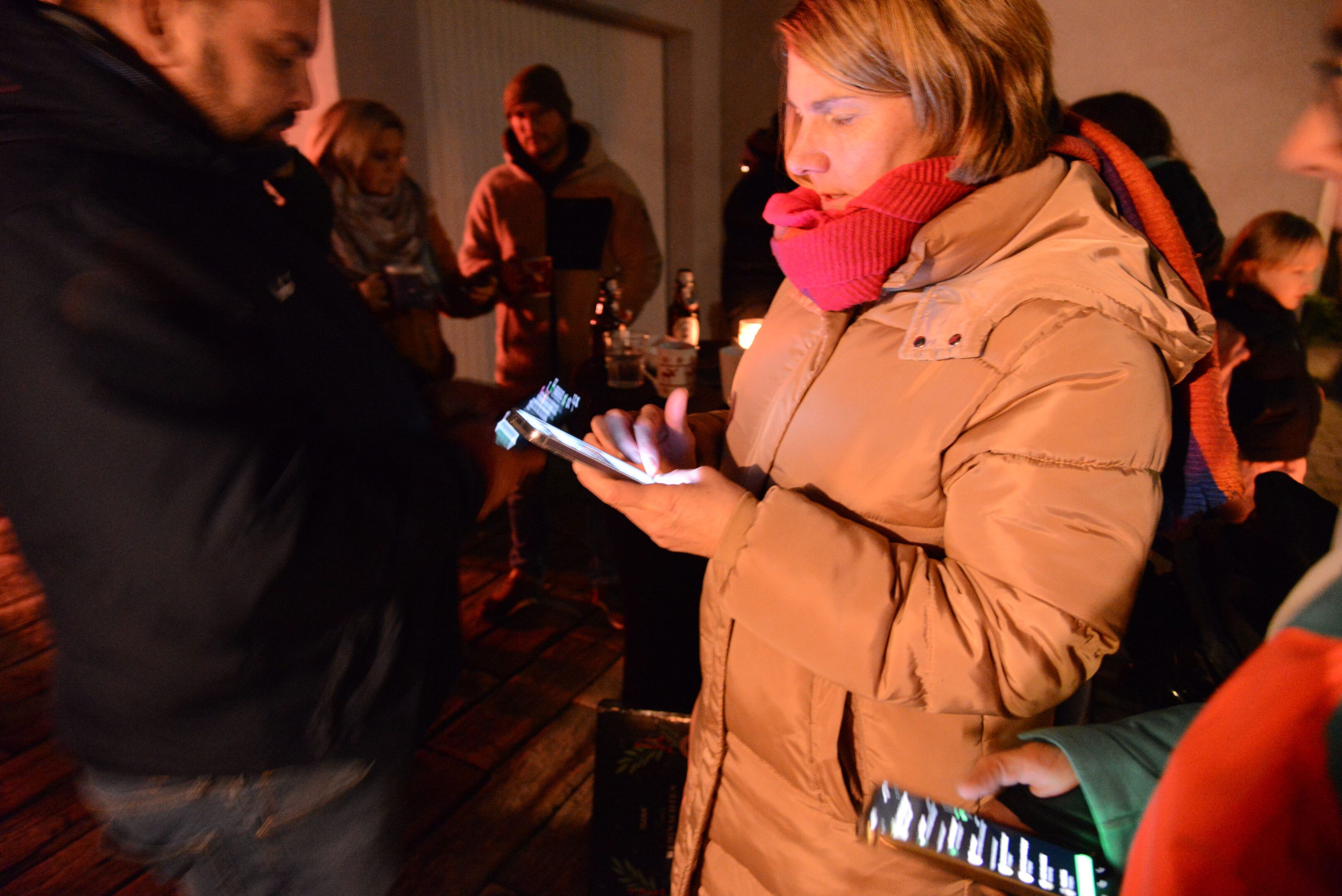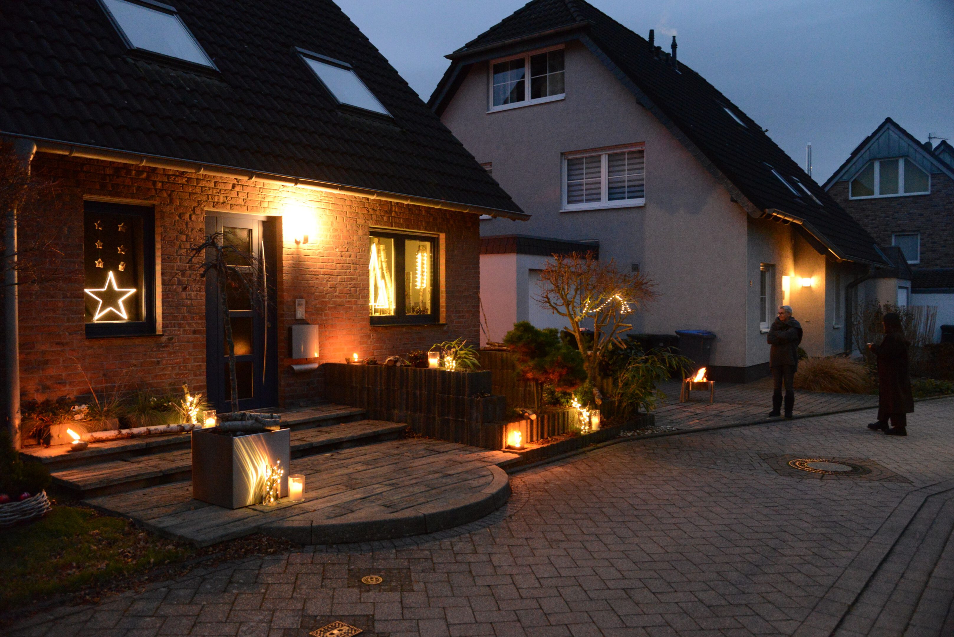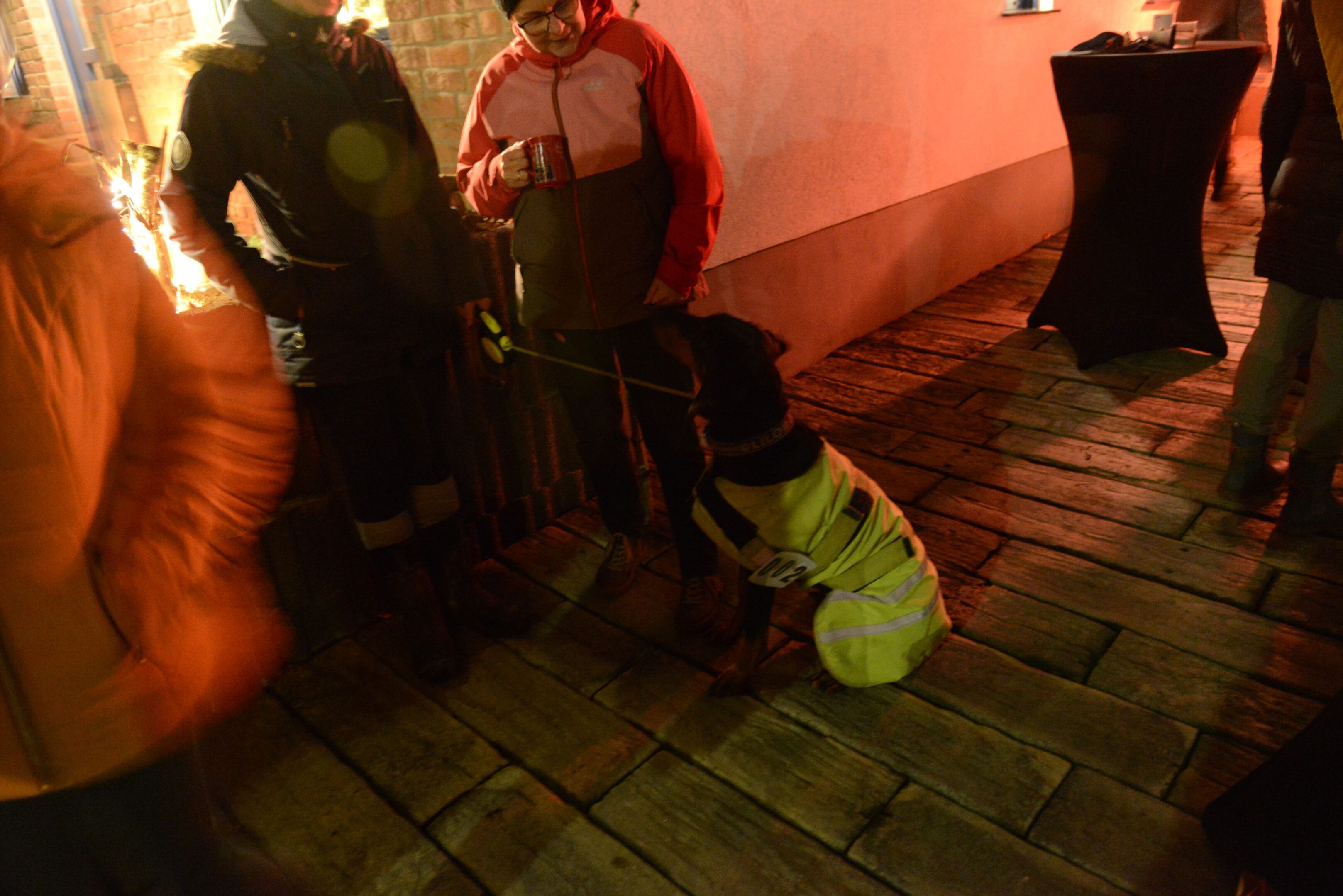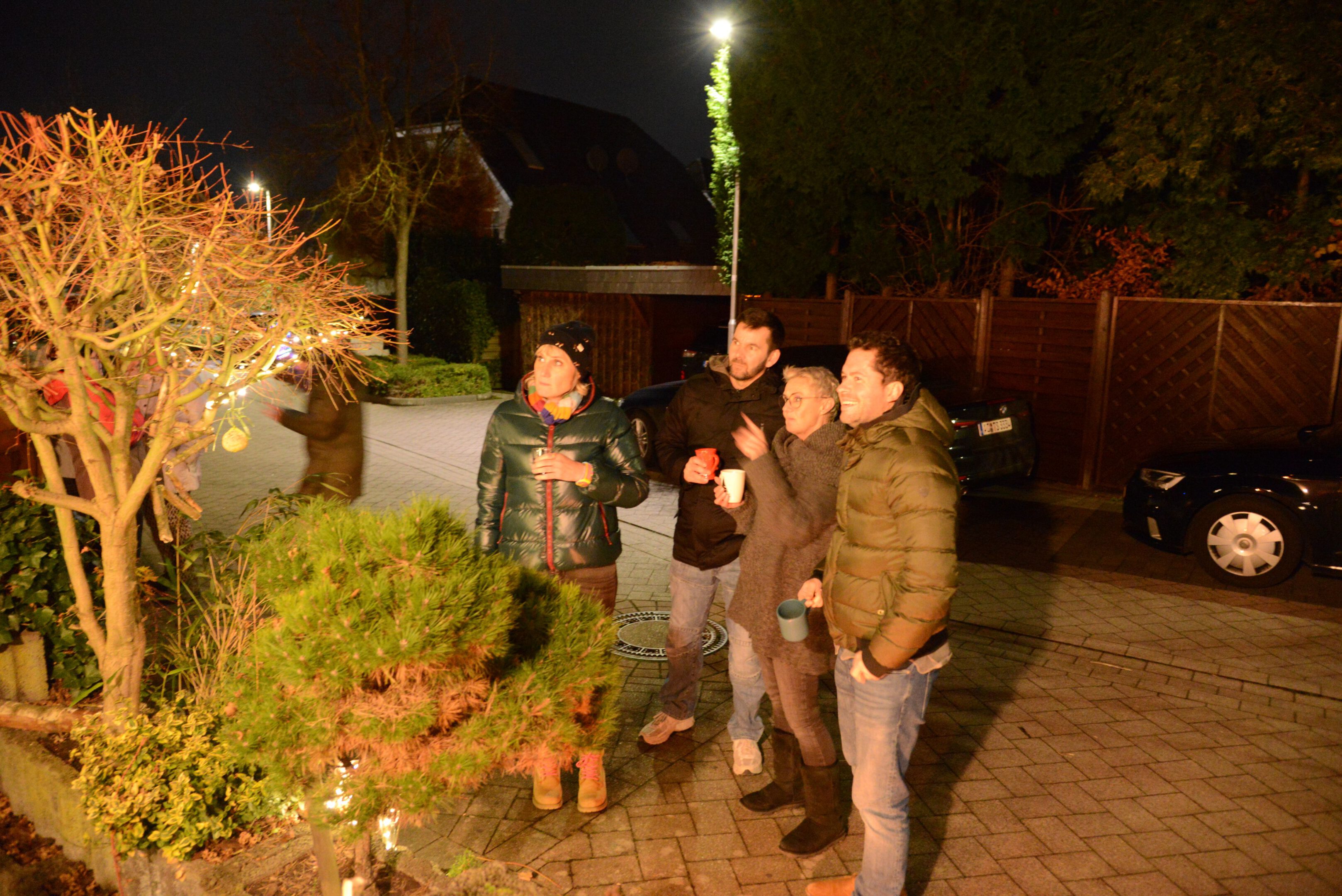 Zuerst die Arbeit, dann das Vergnügen – auch für die zahlreichen Gäste. Wo ist die 2 im Fenster? Wer sie nicht auf Anhieb fand, hatte dann vor Ort das Aha-Erlebnis. Runde Zahlen aus geraden Birkenstämmen sind schwierig. Aber es gibt ja auch andere Zahlen. Und Lilo war auch da. Wer sie noch nicht kennt: Der einzige Adventshund, der immer mit dem richtigen Datum am Revers erscheint. Die analogen Gespräche waren ein großes Wiedersehen oder Kennenlernen – so soll es sein. Die Handys dienten nur der Verbreitung des Terminkalenders der Adventsfenster, damit jeder einfach feststellen kann, wo das nächste herzerwärmende Zusammensein im Dorf stattfinden wird.